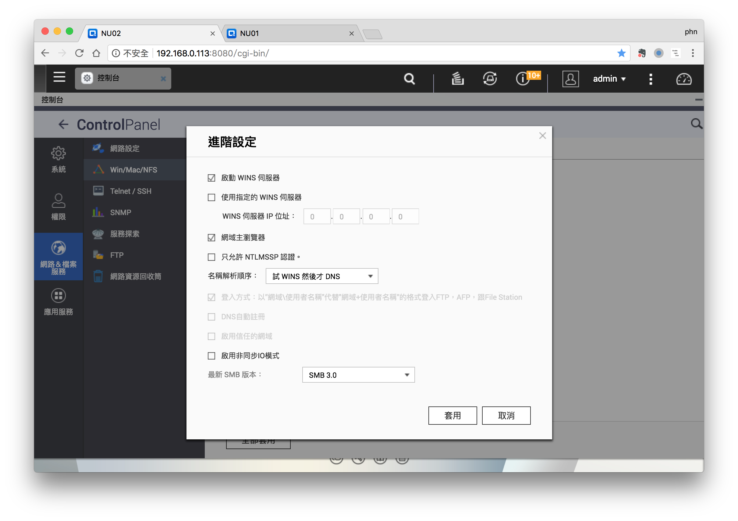 安裝新版 Windows 10 企業版 1709 VL,發生無法連線 QNAP NAS 的 SMB 分享資料夾:
