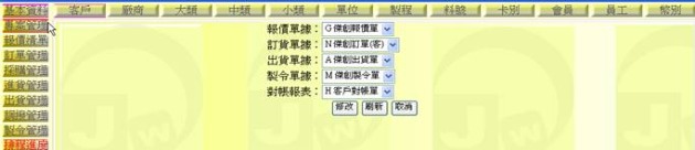 - 在各單據模組設定中,可設定單價自動拷貝自歷史交易價或基本價,其中的基本價就是指這五種價位中的一種,將依據該客戶基本資料中的設定值自動捉取相應料表中的價位金額。