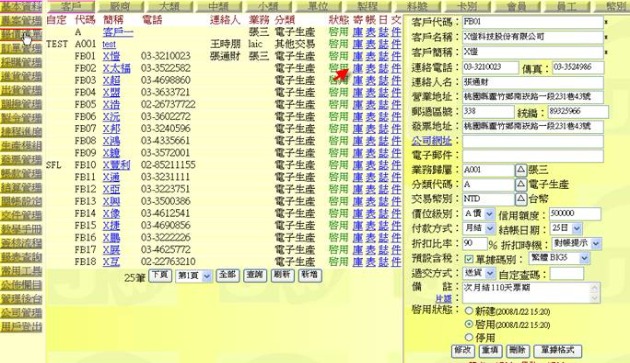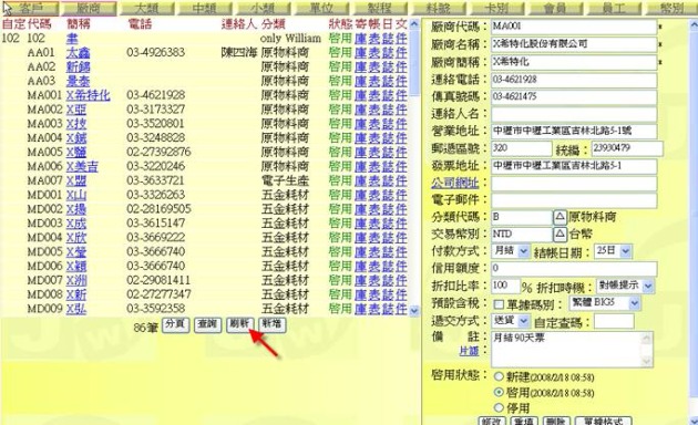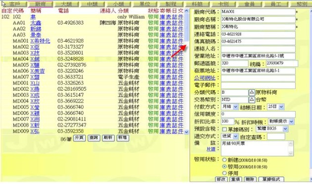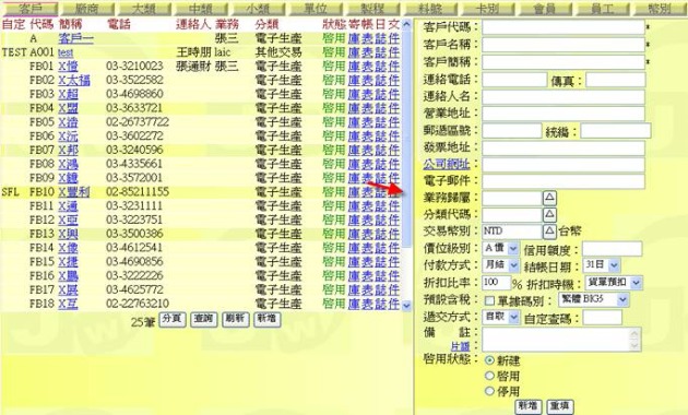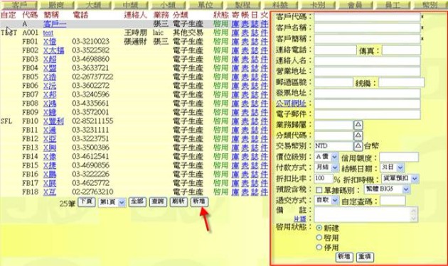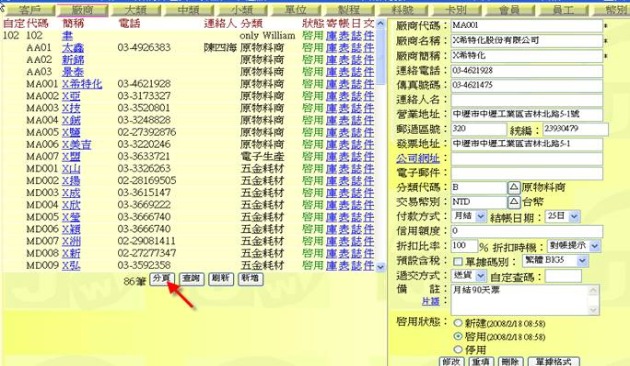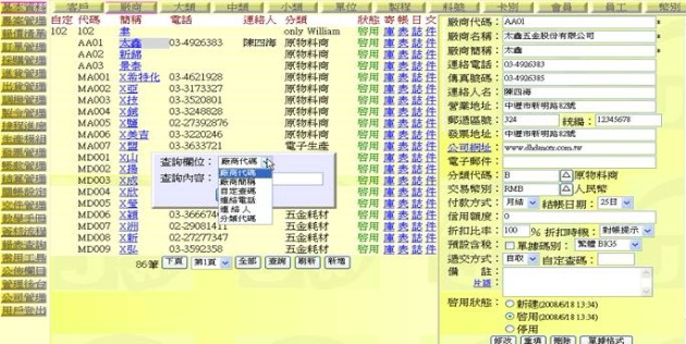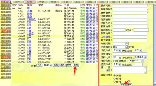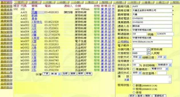 註:關於廠商表單中的其他功能說明,可參考本章第一節中「客戶基本代碼表的建立與操作」。