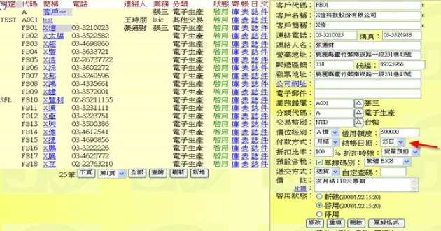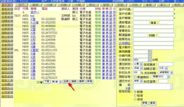 (下圖是按下「全部」按鈕後的效果圖,可以用滑鼠捲軸滑動,以不分頁方式瀏覽所有的客戶)