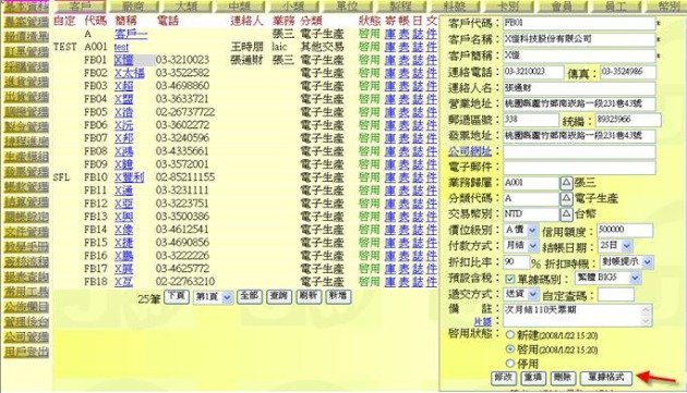 - 按下右側客戶表單下方「單據格式」按鈕後(如下圖紅色箭頭處),即可進入設定畫面。