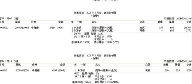 (上圖顯示FB04客戶設定為「對帳提示」,下圖顯示FB04對帳單上增加顯示一行 "對帳未扣90%" 字樣)