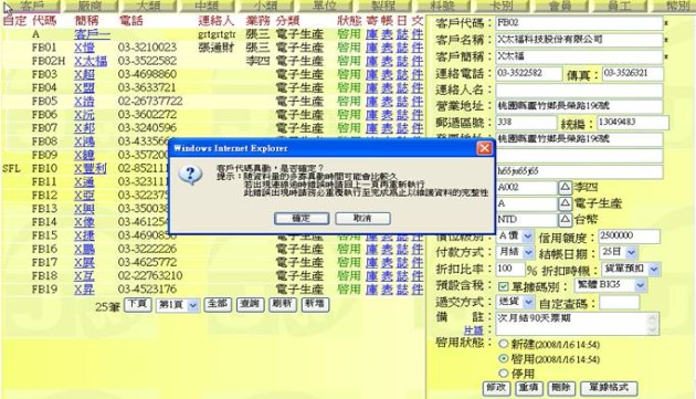 - 若有修改客戶代碼時,會出現提示訊息如下圖,按下確定後會同步異動所有單據中相應的客戶代碼。