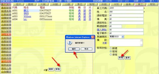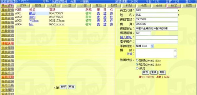 - 「員工」在雲端 ERP 操作中是常做為記錄於單據中與之發生關係的公司人員的一個重要資訊,例如出貨單中的業務員或是人事薪資中的出勤、請假、計薪對象等,如此才能計算業積獎金或是薪資單,因此有必要在 ERP 系統中為其建立一個基本代碼表。
