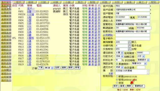 提示2:未曾交易的客戶可以直接刪除(可按下左側表列中相應該客戶的帳「表」查看是否有無交易)