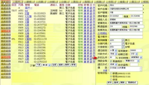 (下圖顯示FB04客戶的折扣比率設定為90%時,出貨單自動算出折扣金額(扣10%的金額)