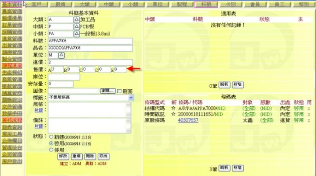 - 價位級別共有A、B、C、D、E五種價位可供選擇,其相對應於商品料號表單中的五種售價,其含意是可將客戶分類售價,例如可將A價代表批發價、B價代表門市價、C價代表零售價、D價代表員工價、E價代表出口價。