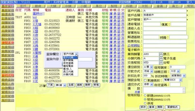- 「分類代碼」可限定那些操作用戶可以查看與此客戶有關連的各式資料。