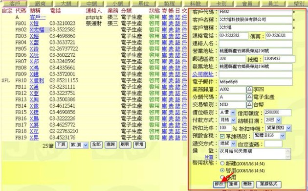 提示3:對於已經交易過的客戶,我們建議是設定為「停用」或異動其「代碼」使其歸結在一特殊代碼字頭段落(例如Z字頭代碼表示已不再交易),因為仍需保留代碼用以日後的統計分析表的操作。