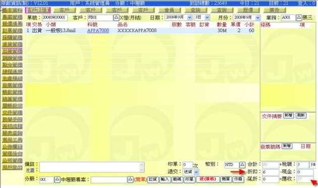- 當有設定折扣比率時(不為0),出貨單上將自動計算出折扣金額。