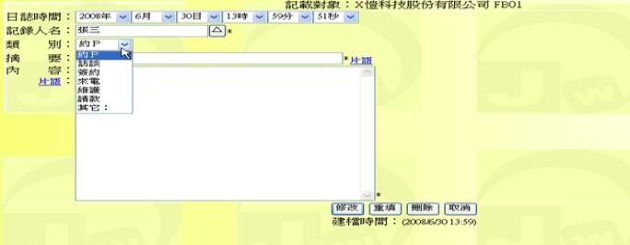 - 日誌表單中可記載時間、記錄人、日誌類別、摘要、內容等等訊息。
