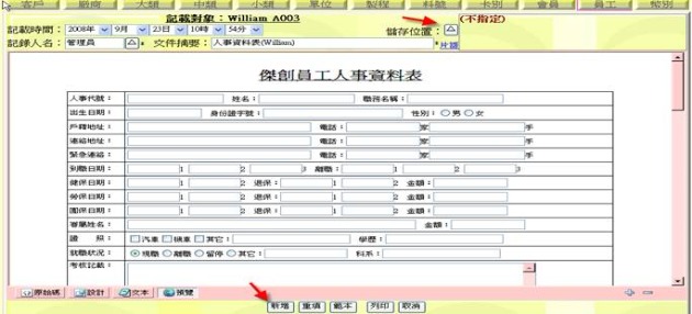 苦系統中有建立「文件庫」對應於人事資料卡的儲存位置,可按右上方「儲存位置」指定卻欲存入的目錄區。