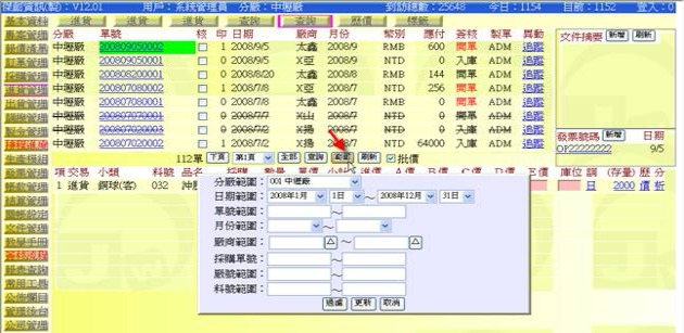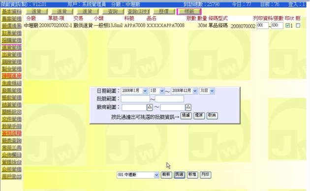 進入方式:主功能「進貨管理」→次功能任選一個「查詢」