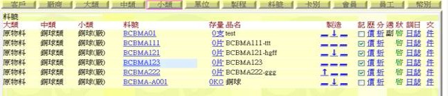 - 若要修改某品項,點選想要修改品項的「料號」欄位,當完成後按下「修改」即可存檔。