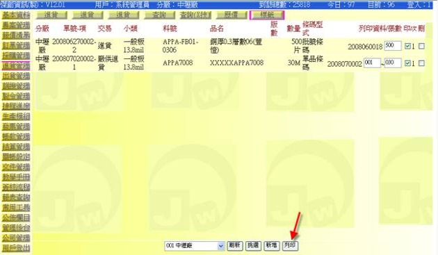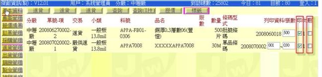 - 標籤資訊的來源是源自於進貨單中的「品項資訊」,當我們在進貨單中打入進貨品項時,就會自動產生標籤資訊,並且將它一項一項的儲存集中起來,一直到我們要列印它的時侯,再打開來進行列印;這樣設計的目的是因為整批資料打好於確認無誤後再列印會比較無錯誤,另外就是為了多人分工操作的緣故,因為可能打進貨單的人是會計(貨單需要她來入帳),而列印標籤的人是倉管(貨品需要他來上架);這時單歸單、貼紙歸貼紙,操作流桯清淅不會混亂。