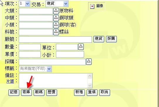 - 按下「寄庫」按鈕(下圖紅色箭頭處),可從寄庫表中挑選出相關的品項欄位。