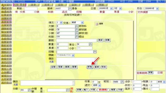 - 當上述欄位確認無誤後,按「新增」按鈕(下圖紅色箭頭處),即可保存第一筆品項。