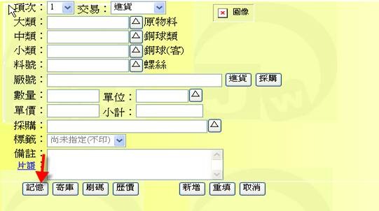 註2:當交易類別選為寄庫時,系統會自動維護一張與該廠商有關的寄庫表。