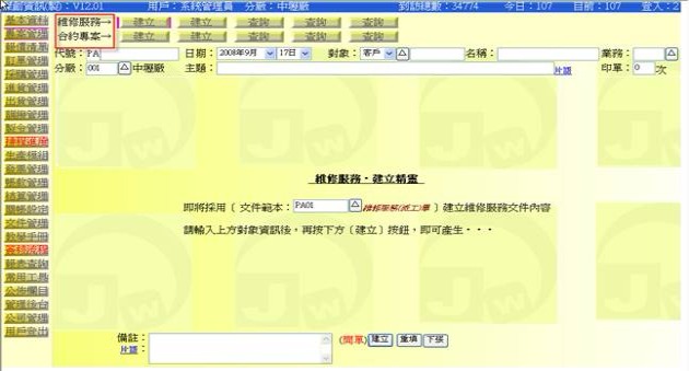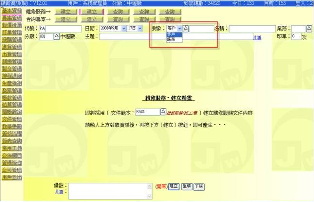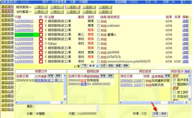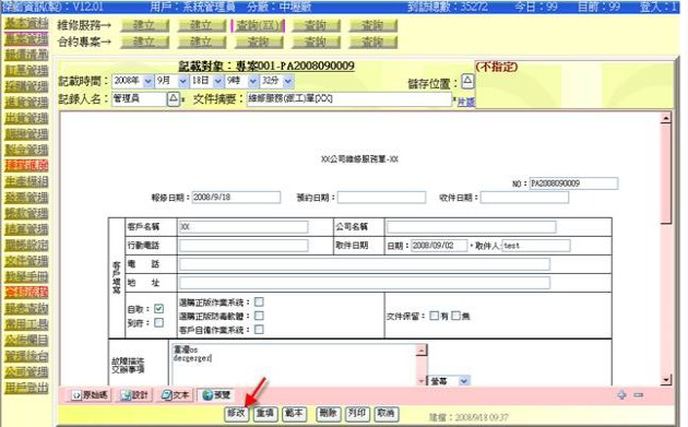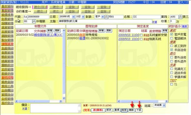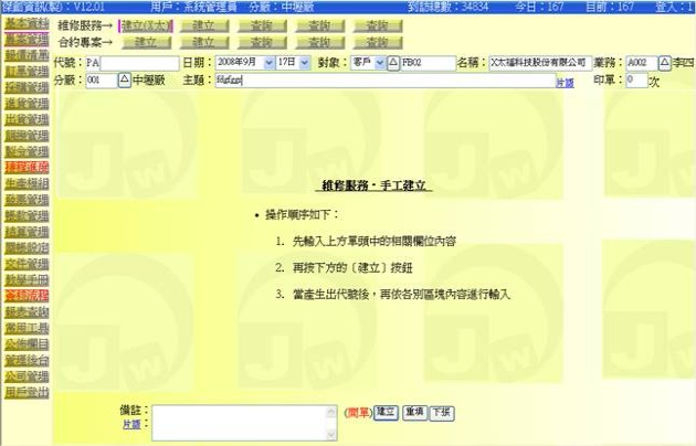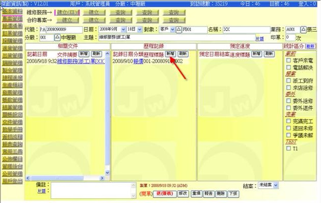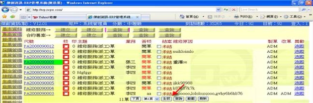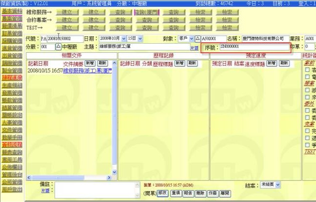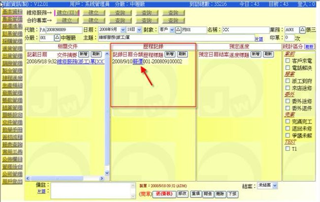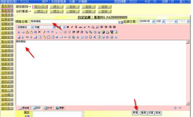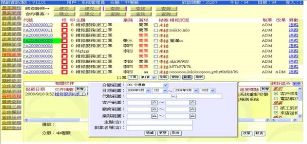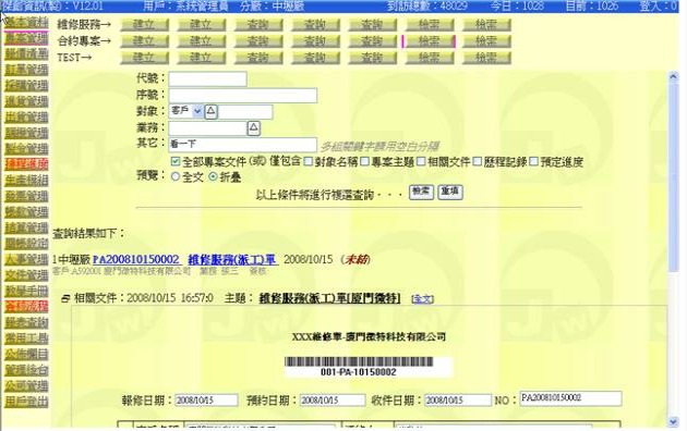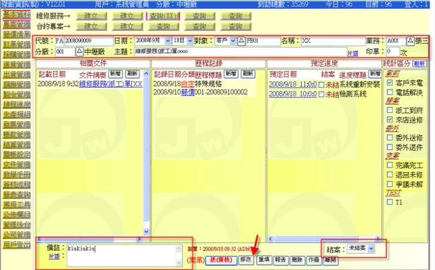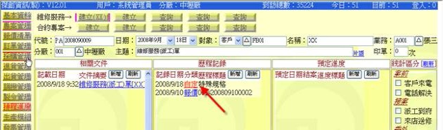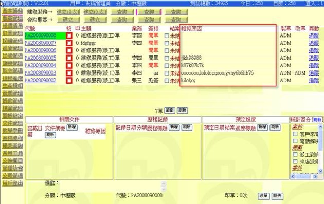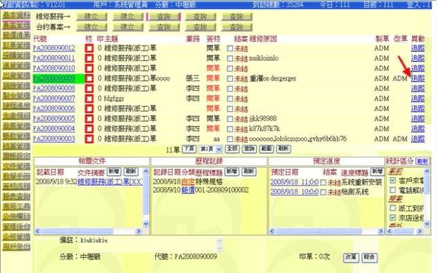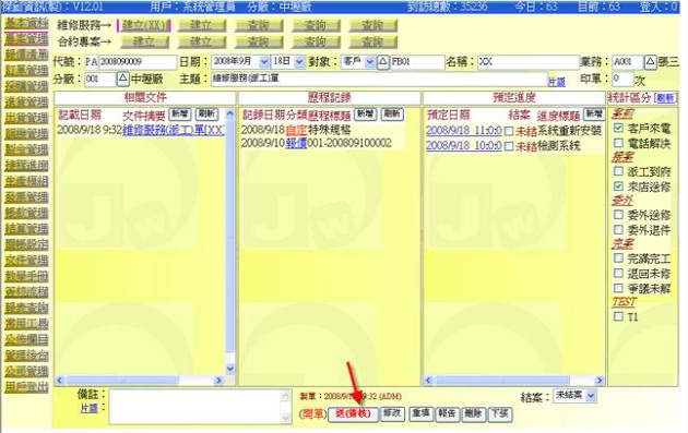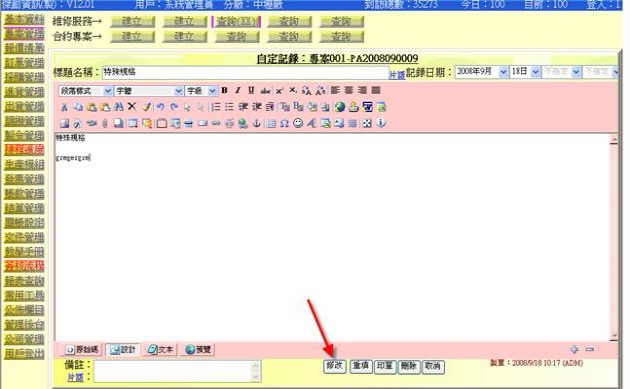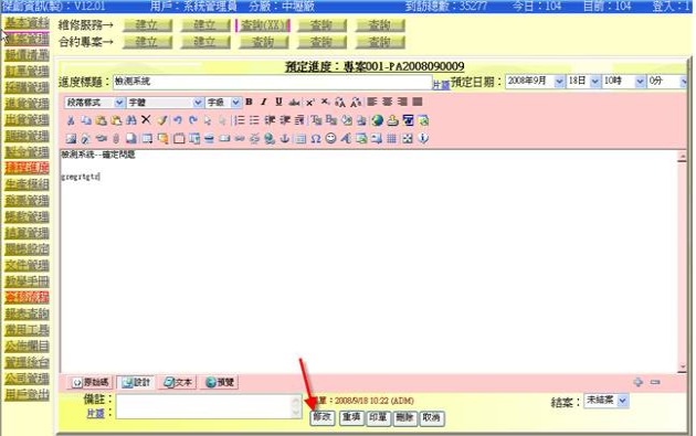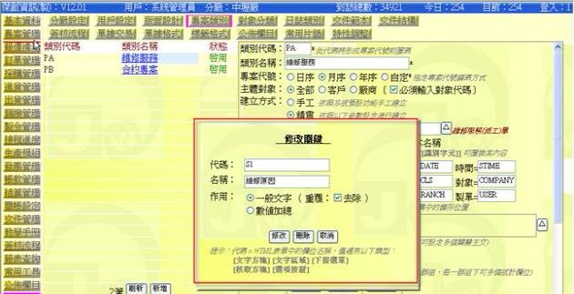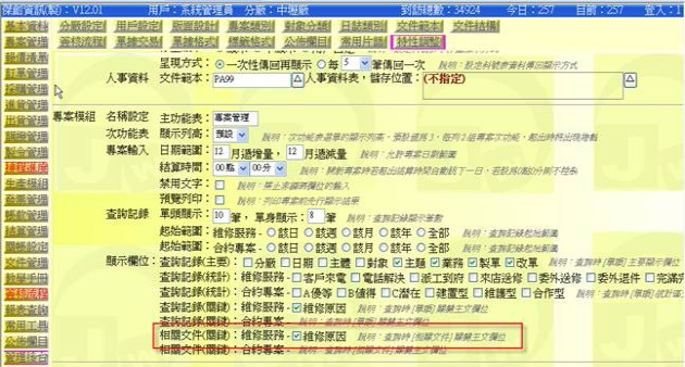 (下圖示範被叫出的專案,注意上方次功能的「查詢(XX)字樣」,它代表正在修改的專案對象是針對XX這個客戶)