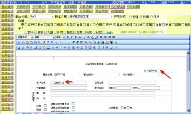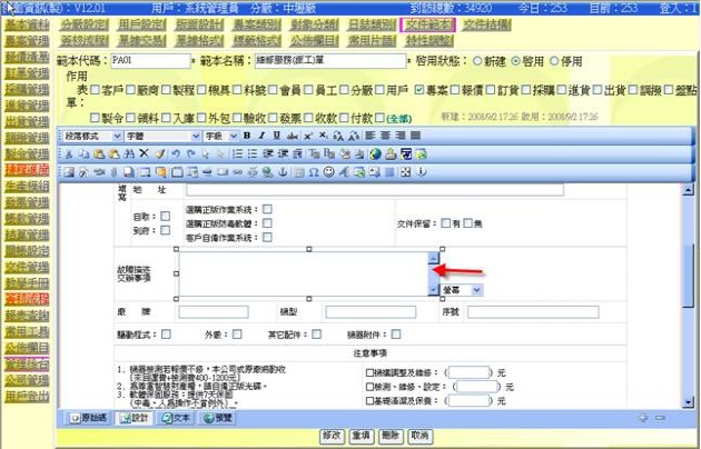 - 文件範本:預設一個文件範本代號,或者留空白讓操作用戶可以自行挑選。