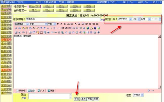 - 當再次回到預定進度表中時,就可以看到剛才新增的那筆進度。