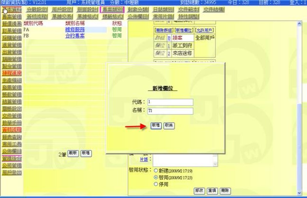 (如下圖示,新增一個叫做「維修原因」的關鍵欄目,其代碼為「S1」,這 S1 就是要被設計套用在 HTML 語法中表單欄位元素中 name 後面的 [[代碼]] 值)