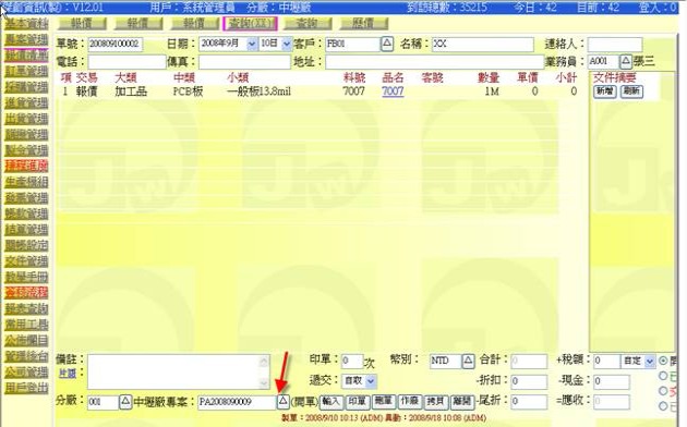 - 以報價單為例,若某張報價單「專案」欄位中被輸入為 "PA2008090009" ,代表要與這個專案發生關連。