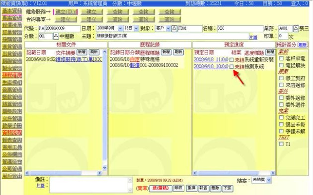 - 若該進度已經完成,你也可以勾選「未結」使其變成「已結」,如此將 可清楚的看出此專案尚有那些進度未完成。