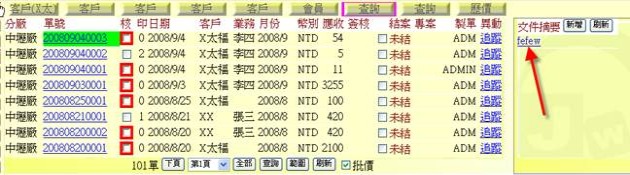 (下圖展示可按下「文件摘要」欄位,重新叫出該份跟單文件)