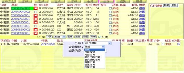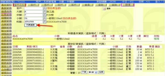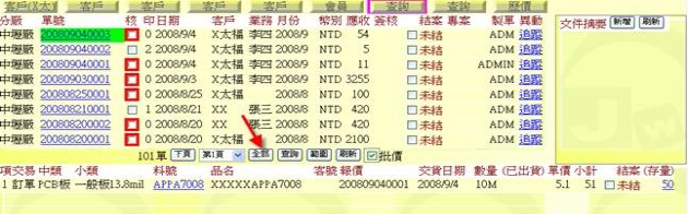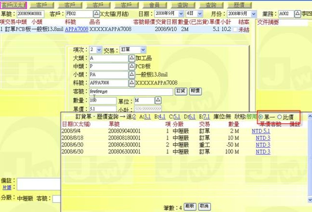 - 有指定「客戶」:可查詢某一料號針對某一客戶的歷史訂單資訊。