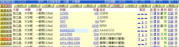 (下圖示範「寄庫」清單,點選表中的某「料號」即可拷貝出相關的寄庫品項)