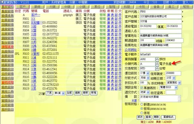 (下圖指出在客戶基本表單中設定某一筆客戶的分類歸屬代碼的位置)