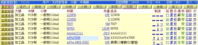 (下圖示範「寄庫」清單,點選表中的某「料號」即可拷貝出相關的寄庫品項)