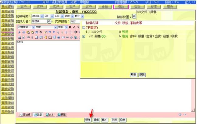 (下圖展示正在新增某一發票的跟單文件,其中可以包含有文字、圖片、表格等資訊)