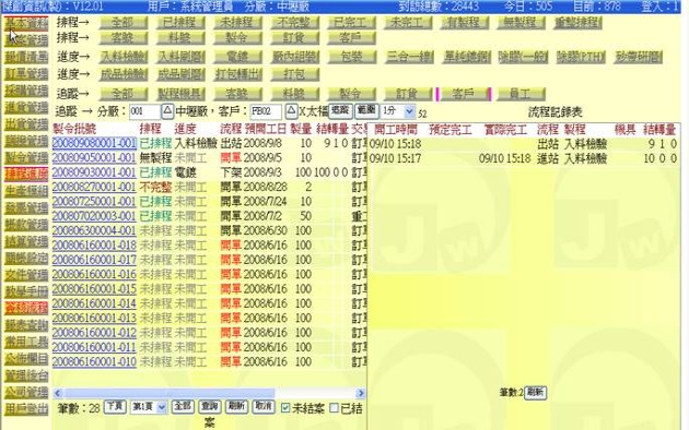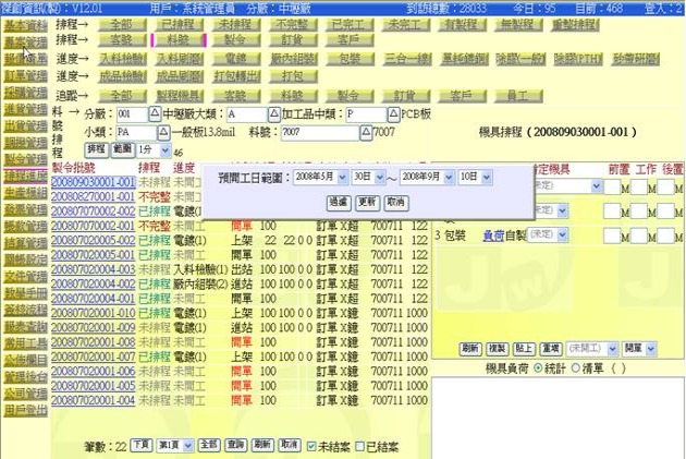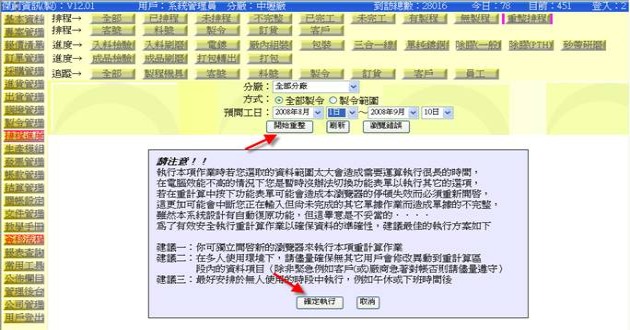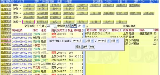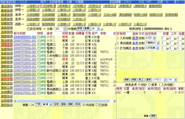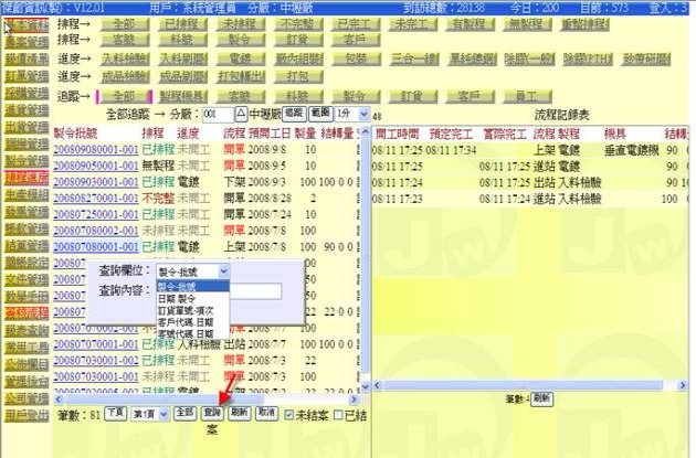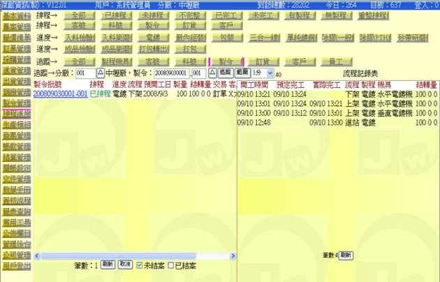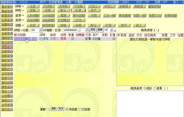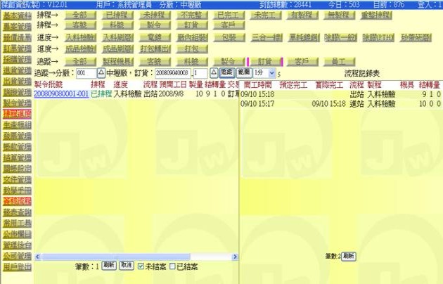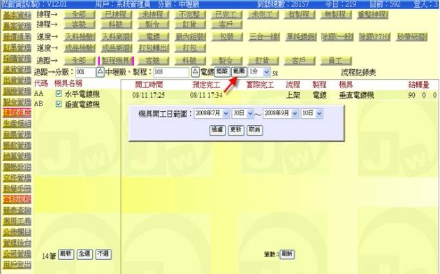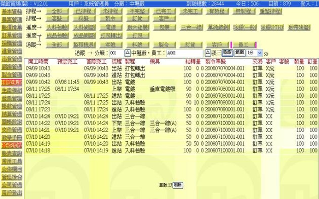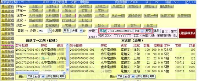 - 若是操作用的權限可以橫跨多個分廠,可以更改上方「分廠」代碼,再按下「排程」按鈕,用以顯示該分廠的追踪資料。