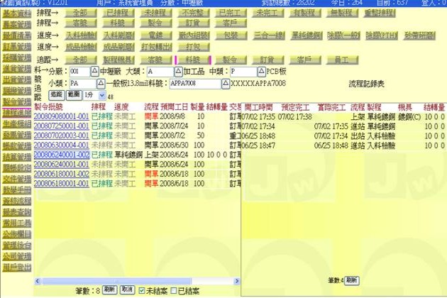 進入方式:主功能「排程進度」→次功能「追踪→全部」