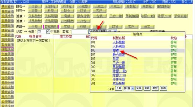 進入方式:主功能「排程進度」→次功能「進度→某一製程」
