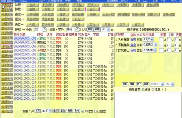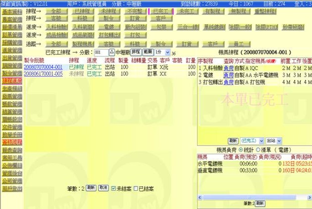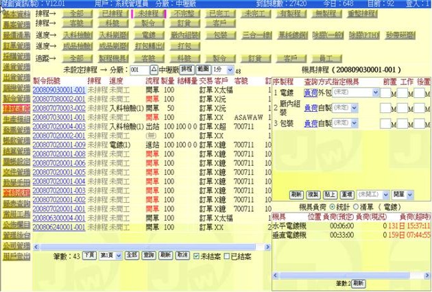- 生管中心:可在看板中查看各製程車間下各機台的負荷情況,並進而引為據據,做出最佳的排程安排。
