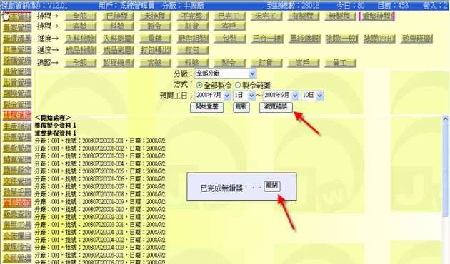 - 重整排程:自動修正因資料關連異常所造成的排程混亂現象。