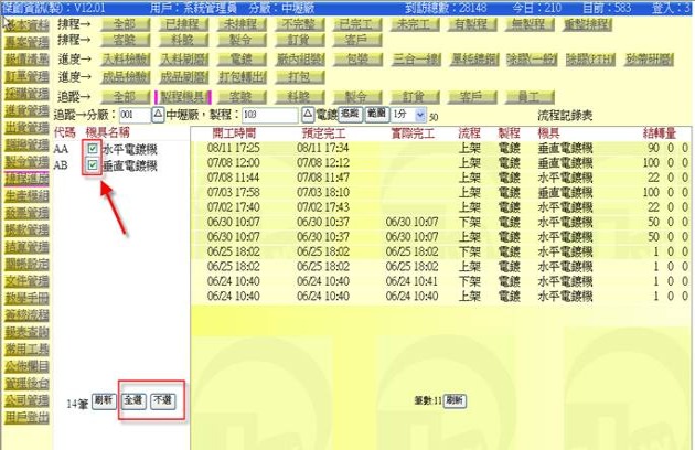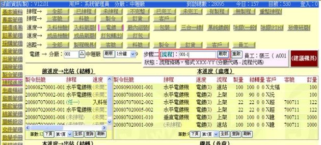 - 製程機具:依據製程與機具追踪生產回報記錄(追踪的操作方式同上所述)。