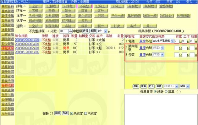 - 不完整:製令中的製程非全部僅有部份排程的列表(排程的操作方式同上所述)。