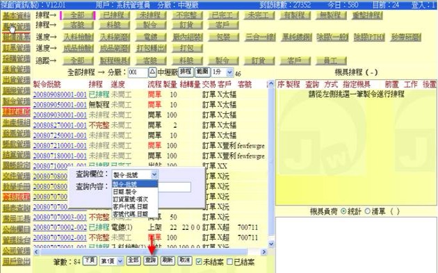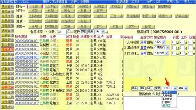 - 未完工:製令尚未走完全部製程的列表,意指最後一個製程未逹滿足量(排程的操作方式同上所述)。