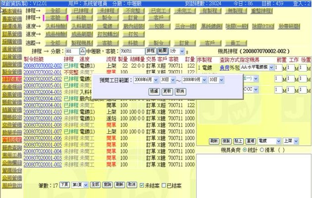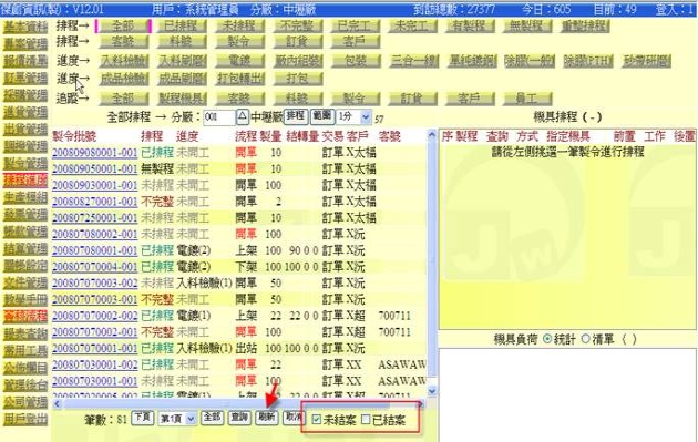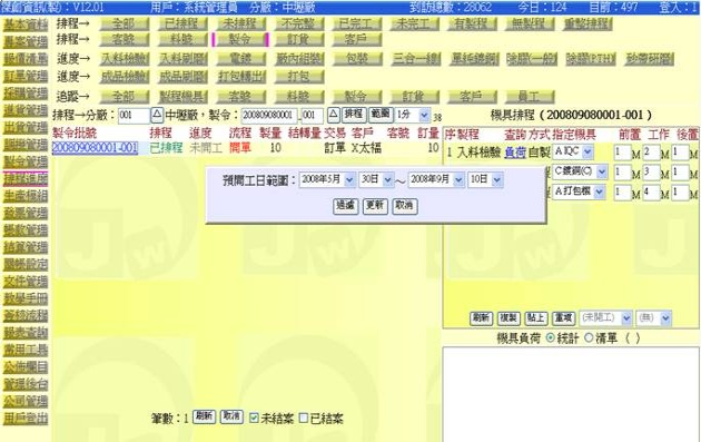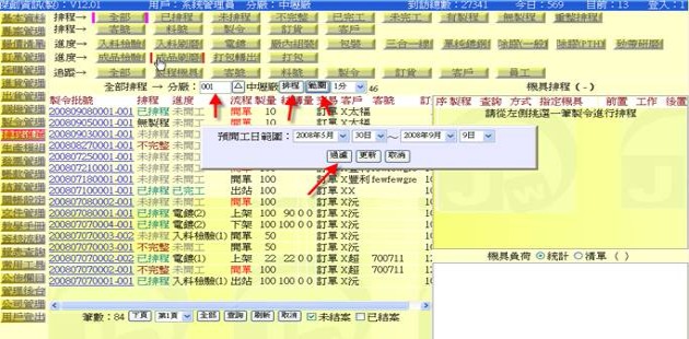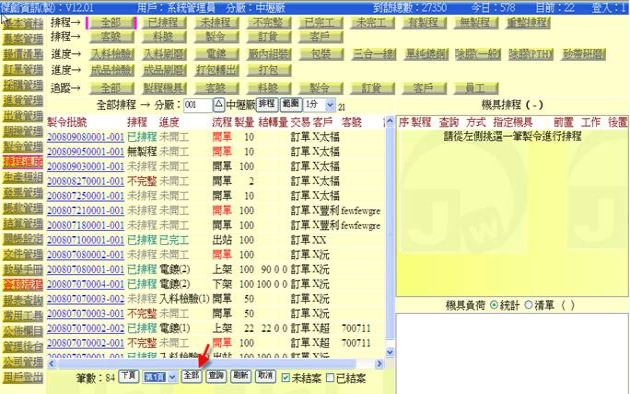 進入方式:主功能「排程進度」→次功能「排程→全部」