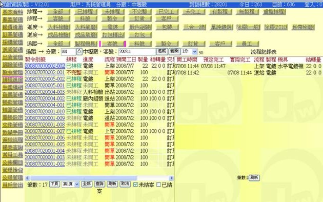 - 訂貨:依據訂單單號追踪生產回報記錄(追踪的操作方式同上所述)。
