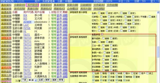 - 當勾選有「查詢」時:代表該操作用戶可以看得到該製程的「進度」看板。