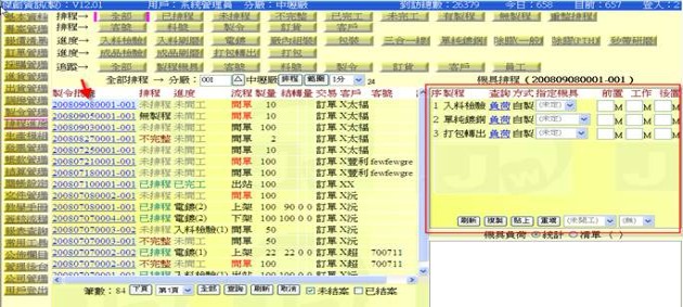 - 有製程:製令單中有設定製程的列表(排程的操作方式同上所述)。