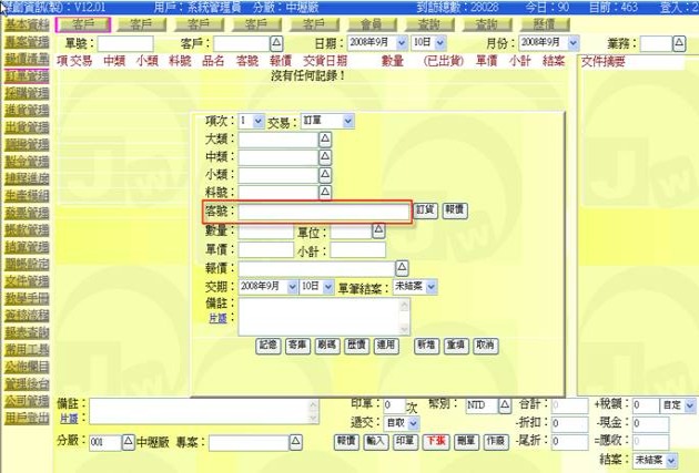 (下圖表逹「客號」可做為排程的資料來源依據,是從訂單在輸入「訂貨明細」時的客號欄位位置)