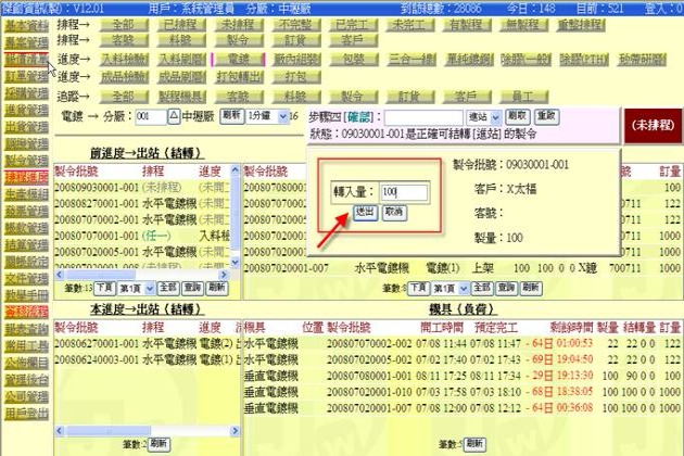 - 步驟 4:最後再輸入轉入量(這將移轉與回報是進站了多少數量)。
