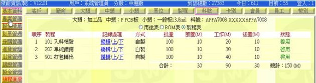 進入方式:主功能「基本資料」→次功能「製程」→點擊某一「製程名稱」