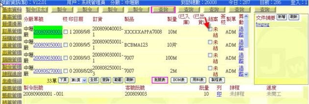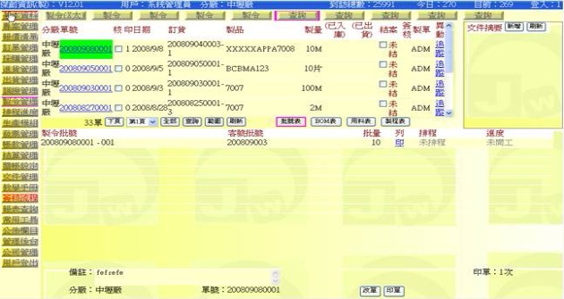 進入方式:主功能「製令管理」→次功能任選一個「製令」